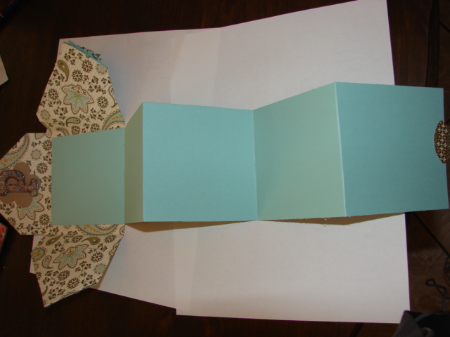THIS FOLDED ALBUM IS MADE FROM ONE PIECE OF DESIGNER PAPER FOR THE ALBUM ITSELF, AND THEN SOME CARD STOCK FOLDED INSIDE FOR THE PHOTO PAGES. HERE WE GO: