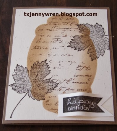 I have a clean and simple birthday card for you today. It is done in fall tans and browns with some maple leaves.