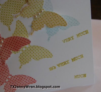 I LOVE BUTTERFLIES!! IF you have been following me for any length of time, you know I have a butterfly garden and so enjoy spring and summer with all the activity fluttering about. So my card today caught my eye the moment I saw it. Fellow Demo Mike Funke designed it, and I cased it with a few tweaks of my own. (Thanks Mike!!)