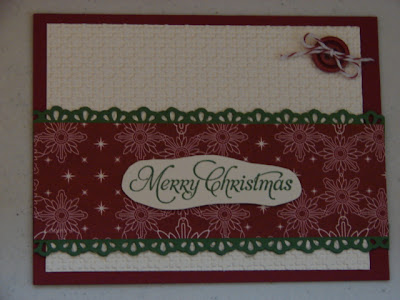I LIKE THE SIMPLE BEAUTY OF THIS ONE. JUST A FEW PIECES OF DESIGNER PAPER AND A PUNCHED SNOWFLAKE AND VOILA - A BEAUTIFUL CARD. THE SENTIMENT SAYS IT ALL!!